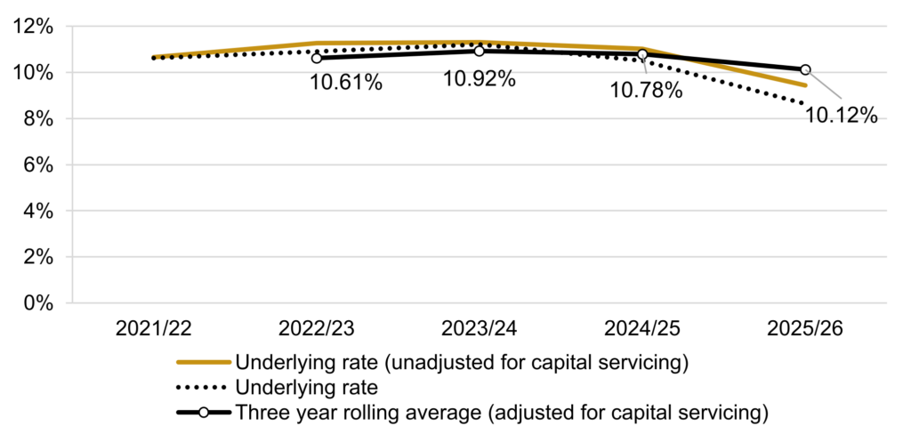 Underlying rate (unadjusted for capital servicing)10.65%11.26%11.31%11.02%9.43%